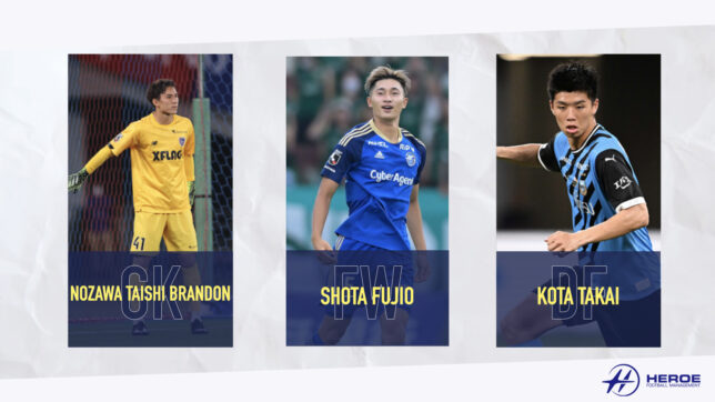 HEROE is proud to announce that Nozawa Taishi Brandon (FC Tokyo), Shota Fujio (FC Machida Zelvia), and Kota Takai (Kawasaki Frontale) have been selected for the U-22 Japan National Team for the upcoming AFC U23 Asia Cup qualifiers in Qatar.